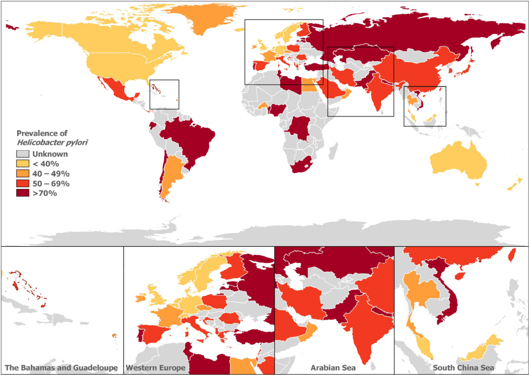 圖. 幽門螺桿菌全球患病率[1]