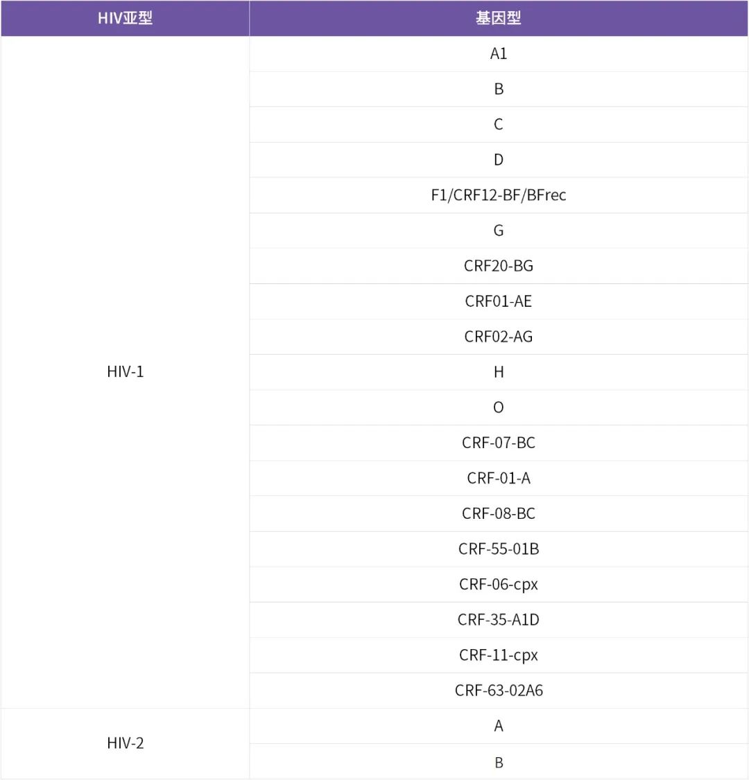 HIV-P24原料已測(cè)試以下亞型,均可檢出