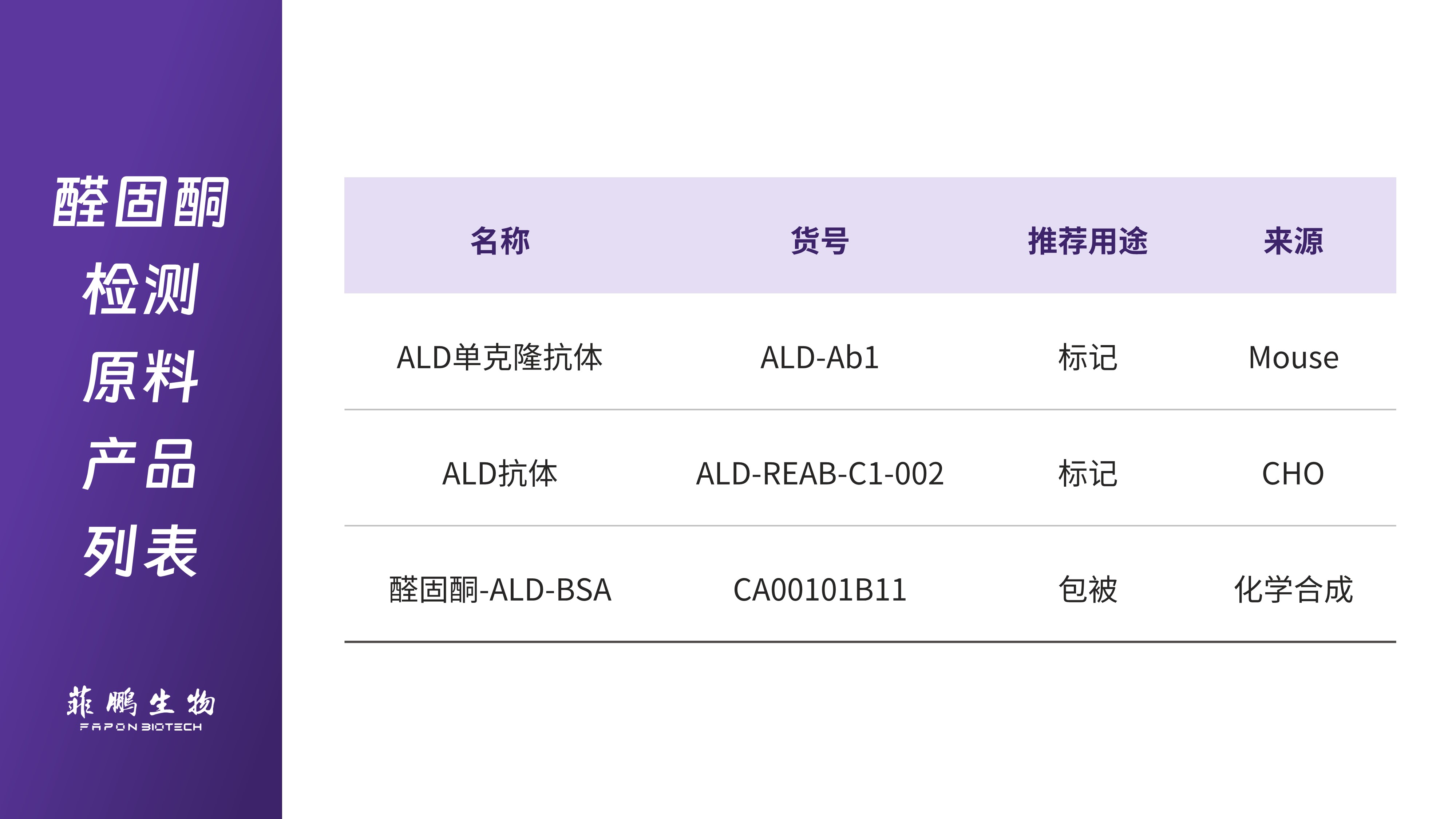 菲鵬生物已推出醛固酮、腎素、皮質(zhì)醇項目核心檢測原料,可提供核心抗體、抗原及解離劑等全套產(chǎn)品,臨床相關性及特異性表現(xiàn)優(yōu)異。