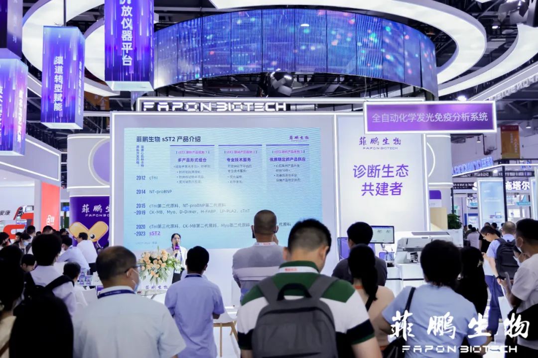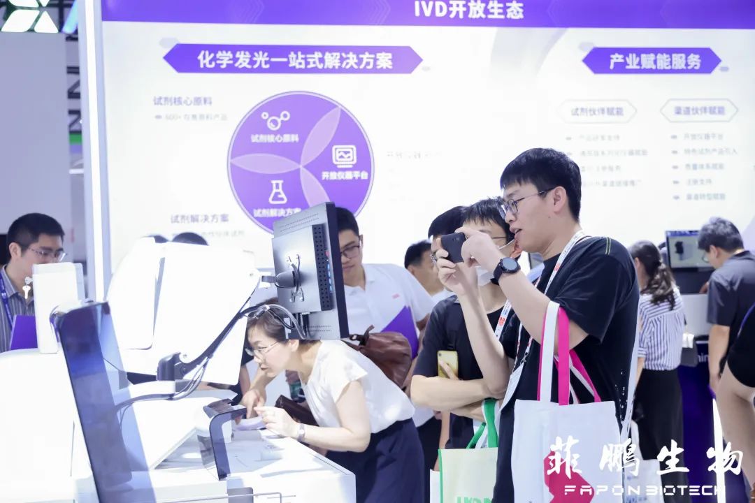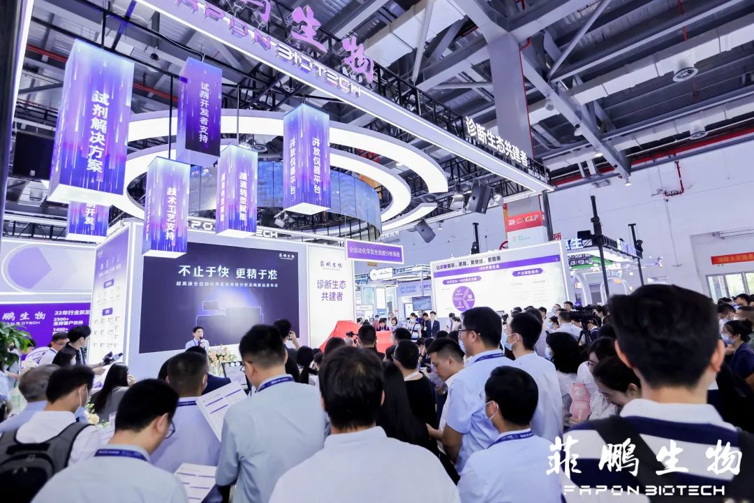 2023年5月28日,第二十屆中國國際檢驗醫(yī)學(xué)暨輸血儀器試劑博覽會(CACLP)在南昌綠地博覽中心隆重開幕。今年,菲鵬生物以單機(jī)檢測速度高達(dá)900測試/小時的重磅新品Shine i8000/9000全自動化學(xué)發(fā)光免疫分析系統(tǒng)閃亮登場,并通過分享化學(xué)發(fā)光生態(tài)最新戰(zhàn)略以及體外診斷核心原料和試劑解決方案重點產(chǎn)品,全面展示了菲鵬生物在開放平臺生態(tài)模式和原料業(yè)務(wù)的重大進(jìn)展與成果。